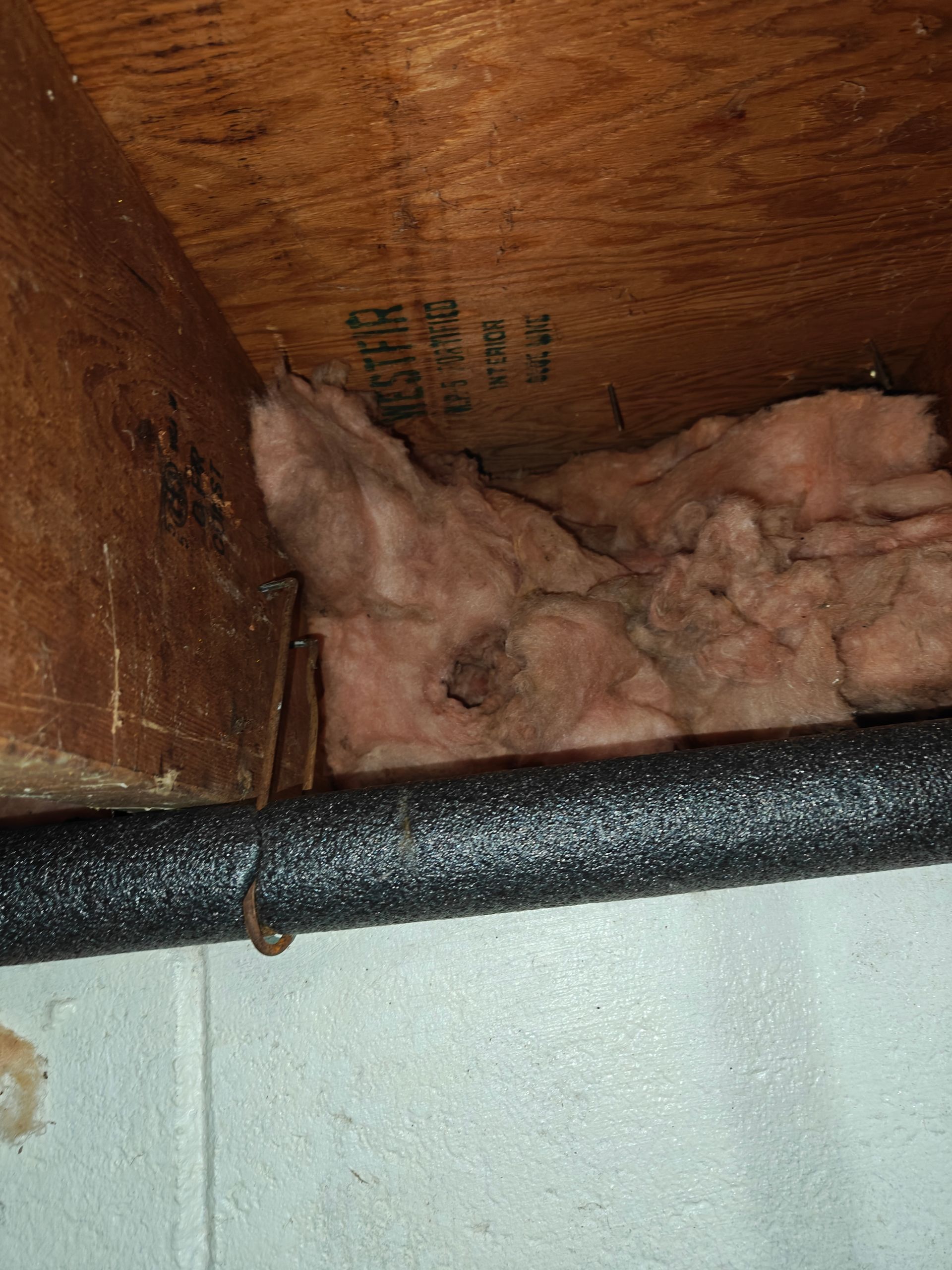 These nests are most commonly found along rim joists, basement ceilings, attic insulation, and wall voids, especially near entry points like utility penetrations or gaps in the structure. Once rodents find a way in, they usually do not travel far before establishing a nesting area. Beyond the nesting itself, there are real concerns that come with it. Rodents will contaminate insulation with droppings and urine, and they will chew on nearby materials, including wood and wiring. Over time, that can lead to odor issues, insulation breakdown, and even safety risks.